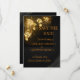 Anuncia tu día especial con estilo con esta elegante tarjeta de anuncio de boda en negro y dorado con flores. Con un sofisticado fondo oscuro acentuado por delicadas flores botánicas doradas, este diseño lujoso establece el tono para una celebración de boda elegante y memorable. Perfecta para bodas formales, modernas o tradicionales, y totalmente personalizable con tus nombres y detalles de la fecha.
