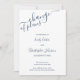 Tarjeta elegante y simple de Cambio de Planes para notificar a los invitados el aplazamiento de su boda. El diseño es en azul marino y blanco con tipografía de letra a mano para los nombres de la novia y el novio y las palabras "cambio de planes". El texto de ejemplo dice "La boda de [sus nombres] ha sido pospuesta. Les haremos saber tan pronto como fijemos una nueva fecha. Fue una decisión difícil y agradecemos su amor y comprensión". La plantilla está lista para que usted agregue sus nombres y edite tanto del texto como desee.