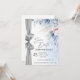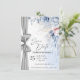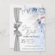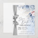 Anuncia tu día especial con una elegancia atemporal utilizando esta tarjeta de "Save the Date" de lujo con acuarela, bellamente diseñada con flores suaves azules y rosadas y un acento de cinta plateada chic.