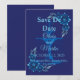 Tarjeta elegante de fecha de boda floral azul