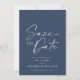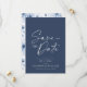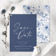 Anuncie su día especial con estilo con esta Tarjeta elegante de fecha de guardado floral azul. Con una sofisticada escritura blanca sobre un fondo azul marino profundo, esta tarjeta emana un encanto atemporal. La parte trasera muestra un delicado patrón floral azul, añadiendo un toque romántico. Perfecta para bodas, compromisos y celebraciones formales, esta tarjeta de fecha de guardado asegura que sus invitados marquen sus calendarios para su evento inolvidable.