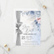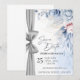 Anuncia tu día especial con elegancia atemporal utilizando esta tarjeta de "Save the Date" de lujo con acuarela, bellamente diseñada con flores suaves azules y rosadas y un acento de cinta plateada chic.