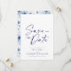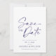 Anuncia tu día especial con estilo con esta Tarjeta elegante de flores azules para guardar la fecha. Con una sofisticada letra naval en un fondo blanco crujiente, esta tarjeta emana encanto atemporal. La parte posterior muestra un delicado patrón floral azul, agregando un toque romántico. Perfecta para bodas, compromisos y celebraciones formales, esta tarjeta para guardar la fecha asegura que tus invitados marquen sus calendarios para tu evento inolvidable.