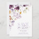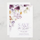 Anuncia tu día especial con esta elegante tarjeta de "Guardar la fecha" que presenta delicadas flores de acuarela en tonos púrpura y marfil. Perfecta para temas de boda románticos y atemporales. Detalles personalizables.