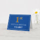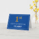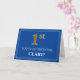 El frente de este lujoso y lujoso diseño de tarjetas de felicitación con temática de cumpleaños cuenta con un gran número ordinal "1st" que tiene un aspecto de imitación de oro falso, el mensaje "FELIZ PRIMER CUMPLEAÑOS", un nombre del destinatario del personalizable, y un patrón de borde que consiste en líneas delgadas sobre un fondo de color azul. El interior presenta un mensaje de bienvenida de cumpleaños de personalizable, o tal vez podría ser borrado y dejado en blanco si se va a escribir un mensaje a mano. Una tarjeta de felicitación de cumpleaños editable como esta podría ser enviada para celebrar el primer cumpleaños de alguien. [~Z0000482]
