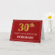 La parte delantera de este respetable y lujoso diseño de tarjetas de felicitación con temática de cumpleaños incluye un gran número ordinal "30" con un aspecto falso/imitación de oro inspirado en el oro, el mensaje "FELIZ 30 BIRTHDAY", un nombre de destinatario personalizado, y un patrón de frontera consistente en líneas delgadas en un fondo de color rojo. El interior presenta un mensaje de bienvenida de cumpleaños personalizado, o tal vez podría ser borrado y dejado en blanco si se va a escribir un mensaje a mano. Una tarjeta de felicitación personalizada de cumpleaños como esta podría ser una manera elegante de enviar un mensaje de bienvenida de cumpleaños a alguien que está celebrando su trigésimo cumpleaños. [~Z0000467]