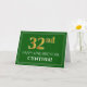 En la parte delantera de este elegante y respetable diseño de tarjetas de felicitación con temática de cumpleaños se encuentra un gran número ordinal "32nd" con un aspecto inspirado en el oro de imitación/imitación, el mensaje "HAPPY 32ND BIRTHDAY", un nombre del destinatario del personalizable, y un patrón fronterizo consistente en líneas delgadas sobre un fondo de color verde. El interior presenta un mensaje de bienvenida de cumpleaños editable, o tal vez podría ser borrado y dejado en blanco si se va a escribir un mensaje a mano. Una tarjeta de felicitación de cumpleaños editable como esta podría ser enviada para celebrar el cumpleaños 32 de alguien. [~Z0000481]