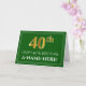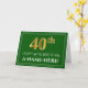 La parte delantera de este elegante y elegante diseño de tarjetas de felicitación temática de cumpleaños tiene un gran número ordinal "40" con un aspecto falso/imitación de oro inspirado en el oro, el mensaje "FELIZ CUMPLEAÑOS 40", un nombre de destinatario personalizado, y un patrón de borde formado por líneas delgadas en un fondo de color verde. El interior presenta un mensaje de bienvenida de cumpleaños de personalizable, o tal vez podría ser borrado y dejado en blanco si se va a escribir un mensaje a mano. Una tarjeta de felicitación de cumpleaños de personalizable como esta podría ser una manera elegante de enviar un mensaje de felicitación de cumpleaños a alguien que está celebrando su cuadragésimo cumpleaños. [~Z0000481]