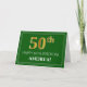 La parte delantera de este elegante y respetable diseño de tarjetas de felicitación temáticas de cumpleaños tiene un gran número ordinal "50" con un aspecto falso/imitación de oro inspirado en el oro, el mensaje "FELIZ 50 BIRTHDAY", un nombre de destinatario del personalizable, y un patrón de borde compuesto de líneas delgadas en un fondo verde de color. El interior presenta un mensaje de bienvenida de cumpleaños de personalizable, o tal vez podría ser borrado y dejado en blanco si se va a escribir un mensaje a mano. Una tarjeta de felicitación de cumpleaños editable como esta podría ser enviada para celebrar el cincuentenario de alguien. [~Z0000481]