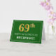 La parte delantera de este elegante y elegante diseño de tarjetas de felicitación temática de cumpleaños tiene un gran número ordinal "69th" con un aspecto falso/imitación de oro inspirado en el oro, el mensaje "FELIZ 69TH BIRTHDAY", un nombre de destinatario personalizado, y un patrón de borde compuesto de líneas delgadas en un fondo de color verde. El interior presenta un mensaje de bienvenida de cumpleaños de personalizable, o tal vez podría ser borrado y dejado en blanco si se va a escribir un mensaje a mano. Una tarjeta de felicitación de cumpleaños de personalizable como esta podría ser usada para reconocer el cumpleaños sesenta y nueve de alguien. [~Z0000481]