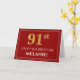 La parte delantera de este respetable y lujoso diseño de tarjetas de felicitación de cumpleaños incluye un gran número ordinal "91st" con una apariencia inspirada en el oro de imitación/imitación, el mensaje "HAPPY 91ST BIRTHDAY", un nombre editable para el destinatario, y un patrón de borde consistente en líneas delgadas en un fondo de color rojo. El interior presenta un mensaje de bienvenida de cumpleaños editable, o tal vez podría ser borrado y dejado en blanco si se va a escribir un mensaje a mano. Una tarjeta de felicitación de cumpleaños editable como esta podría ser una manera elegante de enviar un mensaje de felicitación de cumpleaños a alguien que está celebrando su cumpleaños noventa y uno. [~Z0000467]