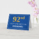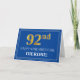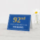 Tarjeta Elegante Faux Gold Look 92nd Birthday, Nombre (Azu
