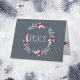 Este elegante diseño de flores festividades plateadas y rojas, con un fondo gris moderno, le dará a todas sus tarjetas de Navidad un aspecto moderno y elegante. Se puede personalizar todo el texto.