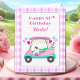¡Celebra su fabuloso 80 con una tarjeta de cumpleaños tan divertida y vibrante como ella! Con un alegre carrito de golf lleno de regalos brillantes, un pastel de cumpleaños y champán picante, este diseño único es perfecto para cualquier mujer amante del golf. ¡Una elección para su día especial!