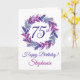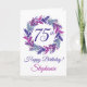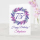 Elegante tarjeta de cumpleaños 75º Wreath Púrpura Púrpura Esta es una elegante y especial tarjeta de cumpleaños de arte morado especialmente diseñada para tus amigos que están pasando el maravilloso hito de 75! Personaliza esta tarjeta con su nombre y un mensaje de cumpleaños. Usted puede personalizar el interior con su(s) nombre(s) como donador de regalo/tarjeta. Par esta tarjeta con una bonita taza personalizada de nuestra tienda! A tu amigo le encantará esta tarjeta elegantemente diseñada.