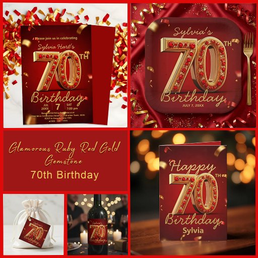 Tarjeta Elegante Lujoso Oro y Rojo Rubí 70 Cumpleaños