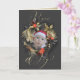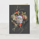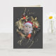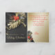 Una corona de isla tropical moderna y hermosa rodea tu foto de vacaciones favorita, El fondo negro con hojas de palma elegantes doradas y negras y flores escarlatas rojas le da a este saludo de Navidad tropical un atractivo muy exótico. Perfecto para la Navidad en los trópicos, La caligrafía dorada dice Paz y Alegría. Decorado también en el interior con el mismo tema tropical dorado y negro.