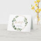 Diseñado para coordinar con nuestra colección de bodas Moody Greenery Foliage, esta tarjeta de agradecimiento personalizable presenta un marco geométrico dorado acentuado con ramas de eucalipto acuarela en verde salvia, combinado con texto en dorado y gris. Agregue texto personalizado en letra elegante, así como un mensaje opcional en el interior.