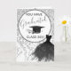 Elegante Vestido Purpurinoso De Plata De Esparkling Que Tiene Tarjeta De Graduación Graduada. Con texto escrito a mano de guión, hermoso vestido de diseño gráfico negro y gorra profesional de graduación con diseño gráfico diploma. Adentro tiene el mismo diseño gráfico de vestimenta más texto negro: "Felicidades - ahora puedes usar el vestido". Por favor, contáctame si encuentras algún problema en personalizar tu tarjeta. @Miri Creations - Creado Solo Para Ti. Todos Los Derechos Reservados.
