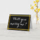 Esta carta simple, pero elegante, presenta la importante pregunta, "¿Te casarás conmigo?" en el frente, junto con una falsa frontera dorada. El interior contiene un mensaje personalizado.