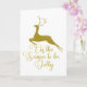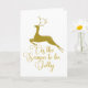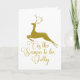 Un elegante reno dorado salta en una hermosa tarjeta de vacaciones con la bella letra de la canción de los Navidades Esta es la estación para ser alegre en sofisticada caligrafía. Personalizar el interior con tu propio mensaje personalizado.