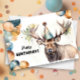 Esta tarjeta de cumpleaños presenta un ilustracion único y original de una alce acuarela que usa un gorra fiesta festivo y está llena de globos de cumpleaños coloridos. El ilustracion acuarela añade un encanto cautivador y artístico a las festividades, capturando la gracia y la belleza de esta criatura del bosque. Esta tarjeta de saludo añade un toque de naturaleza a cualquier celebración de cumpleaños, creando un momento memorable y único para el destinatario.