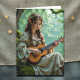 A sweet whimsical birthday card featuring an elven fairy in vintage dress playing a ukulele on a tree branch. Inside is a greeting wishing your birthday girl a magical day! You can edit all text on the card and add a name in the personalize area.