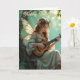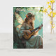 A sweet whimsical thinking about you card for a friend or family member featuring an elven fairy in vintage dress playing a ukulele on a tree branch.