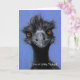 Mi dibujo de lápiz del color de un emu que mira directamente el espectador hace un ilustracion cómico para esta tarjeta de cumpleaños tardía. Todas las palabras son adaptables.