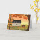 Esta impresionante postal presenta una encantadora casa de campo colonial de Nueva Inglaterra rodeada de los colores vibrantes del follaje de otoño y un festivo campo de calabazas, capturando la esencia de la temporada de cosecha. Perfecta para agregar un toque estacional a tus saludos, esta postal aporta calidez y acogimiento a cualquier mensaje.