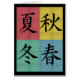 Bonito, tarjeta de felicitación colorida que muestra las cuatro estaciones en kanji japonés con cuatro colores de fondo que representan cada estación. El esquema negro puede ser cambiado fácilmente haciendo clic en el botón del modificar para requisitos particulares. Visite la tienda para los regalos a juego.