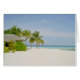 Fotografía de un bungalow en una tranquila playa de las Maldivas, con palmeras y arena cálida.