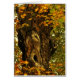 Esta bonita tarjeta de notas en blanco para fotografía de arte muestra un viejo tronco de arce marrón y negro rodeado por una brillante follaje otoñal en amarillo, rojo, naranja y verde. Los nudos antiguos y la corteza forman un interesante patrón abstracto.