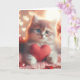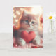 Esta tarjeta en blanco con un gatito lindo sosteniendo un corazón es perfecta para el Día de San Valentín.