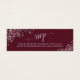 Esta tarjeta en miniatura es perfecta para añadir una dirección web rsvp en línea a sus invitaciones de boda. Presenta un diseño burdeos elegante con rizos de Relieve metalizado en gris plateado y remolinos y caligrafía de escritura que leen RSVP. Hay espacio para la url de tu sitio web y un plazo de respuesta. El fondo es de un bonito color gris de mármol.