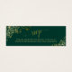 Esta tarjeta en miniatura es perfecta para añadir una dirección web rsvp en línea a sus invitaciones de boda. Presenta un elegante diseño de color verde esmeralda con rizos de Relieve metalizado de imitación dorada y remolinos y caligrafía de guion leyendo RSVP. Hay espacio para la url de tu sitio web y un plazo de respuesta. El dorso es un bonito color dorado de mármol.