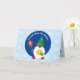 Enano de Navidad lindo con pelota de tenis. Fondo azul con copos de nieve texto personalizable