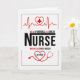 Una tarjeta simple y audaz para despedirse de una enfermera que sale de su hospital o clínica para un nuevo puesto. Realizado en rojo y negro sobre blanco, con una temática de enfermería que le da un verdadero toque a la profesión de enfermería.