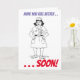 Dibujo Personalizado de una enfermera/matrona un poco aterradora. La tarjeta dice 'Espero que te sientas mejor ...... ¡PRONTO!' En el interior, la tarjeta dice 'Ponte bien pronto'. Personalice fácilmente esta tarjeta utilizando la función de texto de plantilla para agregar un nombre o cambiar el mensaje por completo.