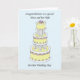 Un pastel de bodas elegante con gradas multi, sistema contra un fondo azul en colores pastel. Las palabras "enhorabuena a una sobrina especial y a su esposa en su día de boda", acompañan la imagen.