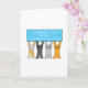 Cuatro gatos del dibujo animado que soportan una bandera azul que diga "enhorabuena usted es contable".