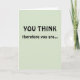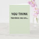 ¡Celebra un importante logro profesional de tu colega, amigo o ser querido con esta tarjeta! El mensaje es un juego de palabras con la frase del filósofo René Descartes "Je pense, donc je suis [creo, por lo tanto, lo soy]" ("cogito ergo sum"). La parte delantera de la tarjeta dice: "USTED PIENSA", seguida de "por lo tanto usted es...". Abriendo la tarjeta, la frase continúa: "¡TENURED! ¡Felicitaciones!" La parte delantera de la tarjeta es de color verde pálido y el mensaje aparece con letras negras. ¡Perfecto para cualquiera al obtener un puesto académico!
