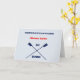 Una carta de felicitaciones "muy alegre" para un remero o una escoria. La tarjeta azul claro tiene el saludo "¡Felicitaciones!" en audaces capitales navales, y el juego de palabras y el pictograma de remos cruzados también están en la marina. Personalice la tarjeta introduciendo el nombre del remero. También puedes cambiar el saludo en la parte delantera si lo deseas, tal vez prefieras "¡Lo hiciste!" o "¡Excelente fila!" por ejemplo. En su interior, el texto también es personalizable, y actualmente dice "Bien hecho en una carrera fantástica. ¡Gran pelea!"