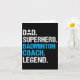 Tarjeta Entrenador de bádminton papá superhéroe divertido