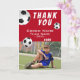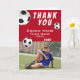 Red Soccer Football Sports Gracias Tarjeta de entrenador con foto. Fútbol gracias tarjeta de entrenador con foto, gracias texto, nombre del entrenador, nombre del equipo, año, nombre y pelotas de fútbol. Dentro de la carta hay más pelotas de fútbol. Tarjeta de agradecimiento por foto - agrega tu foto a la plantilla. Personaliza la tarjeta con nombres y tu texto. ¡Gran carta de agradecimiento para el entrenador del equipo de fútbol!