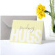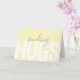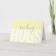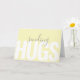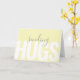 Una simple tarjeta moderna llena de amabilidad y afecto, este diseño tiene el texto "enviando abrazos" en una combinación de letra negrita y manuscrita en la parte frontal de la tarjeta. El fondo amarillo limón claro es una opción de color popular y añade al aspecto contemporáneo de la tarjeta. El texto interior es una expresión reflexiva que se puede pedir tal como está escrita o personalizar con el texto deseado. Esta tarjeta no solo es una excelente opción para ocasiones especiales como el Día de San Valentín, sino que también es perfecta para enviar una tarjeta reflexiva a alguien que está enfermo, necesita un estímulo o quizás un familiar o amigo que vive solo o en un hogar de ancianos. Tantas posibilidades para alegrar el día de alguien con esta simple tarjeta.