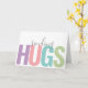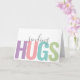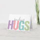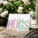 Una simple tarjeta moderna llena de amabilidad y afecto, este diseño tiene el texto "enviando abrazos" en una combinación de letra negrita y manuscrita en la parte frontal de la tarjeta. El texto multicolor sobre un fondo blanco limpio añade un toque contemporáneo a la tarjeta. El texto interior es una expresión reflexiva que se puede pedir tal como está escrita o personalizar con el texto deseado. Esta tarjeta no solo es una excelente opción para ocasiones especiales como el Día de San Valentín, sino que también es perfecta para enviar una tarjeta considerada a alguien que está enfermo, necesita un estímulo o quizás un familiar o amigo que vive solo o en un hogar de ancianos. Tantas posibilidades para alegrar el día de alguien con esta simple tarjeta.