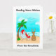 Tarjeta divertida de Navidad. ¡Enviando cálidos deseos desde la playa hacia ti junto a tu chimenea!