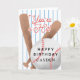Tarjeta de cumpleaños para un niño con un ilustracion de un bate de béisbol y béisbol de colores rojo y azul. El texto de arriba dice "¡Eres un éxito!" y "feliz cumpleaños". Personalizar este producto agregando un nombre en la parte inferior.
