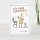 Graciosa tarjeta de cumpleaños personalizado con bloke en bbq y los granjeros tan. Leer el pie de foto - es tu cumpleaños... ¡vive un poco!